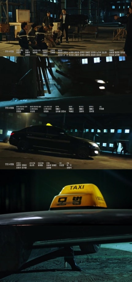 하지만 현장에 택시 한 대가 들어섰다.However, a taxi entered the scene. 창고의 벽까지 뚫고 등장한 해당 차량에서 내리는 하이힐 부츠를 신은 누군가.Someone wearing high-heeled boots that got off the vehicle that broke through the wall of the warehouse. 장성철은 이후 "인사들 해.Jang Sung-chul later said, "Say hi. 우리 모범택시 1호 기사"라고 해당 인물을 소개했다.Our model taxi driver No. 1," introduced the person.