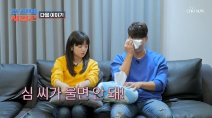 일본인 예비신부 사야 씨는 심형탁이 우는 모습에 "심 씨가 슬프면 나도 슬프다.Japanese bride-to-be, Saya, saw Shim cry and said, "If Shim is sad, I'm sad, too." (심형탁이 울면) 그냥 옆에 있는 거다"며 같이 눈물을 흘렸고 심형탁은 "저는 천사를 만난 것"이라고 해 자세한 이야기에 대한 궁금증을 높였다.(When Shim Hyung-tak cries) We are just next to each other, we shed tears together, and Shim Hyung-tak said, "I met an angel," raising questions about the detailed story. (사진=TV조선 '조선의 사랑꾼' 예고편 캡처)(Photo = TV Chosun's "Lover of Joseon" trailer)
