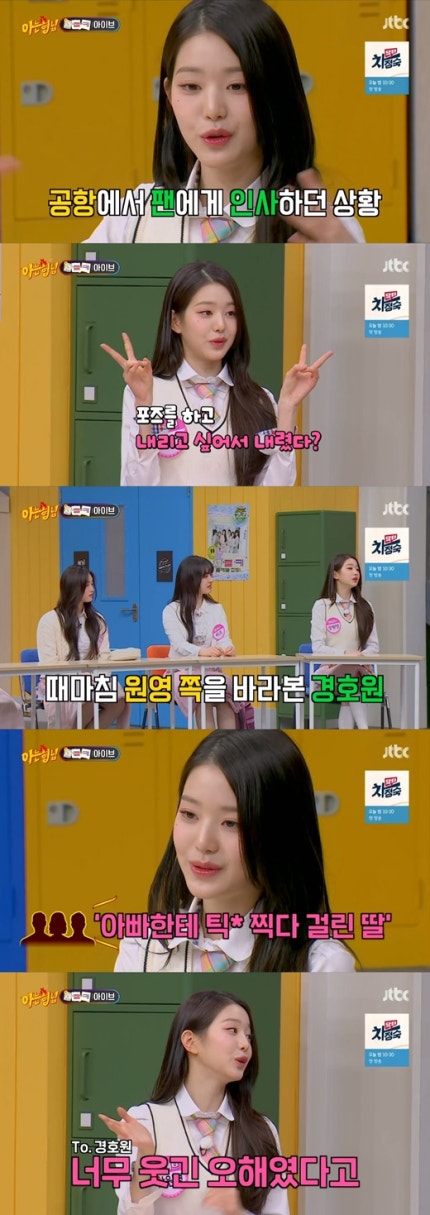 장원영은 "공항에서 팬분들도 있고 기자분들도 계시니까 포즈를 했다.Jang Won-young said, "I posed because there were fans and reporters at the airport. 난 내리고 싶어서 내렸는데, 때마침 경호원 분이 날 보는 것처럼 찍혔다"고 해명했다.I got off because I wanted to, but I was taken as if a bodyguard was looking at me."