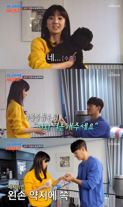하지만 사야는 심형탁의 첫인상을 “키 큰 도둑 같았다”고 평가하며 너스레를 떨었다.However, Saya praised Shim Hyung-tak's first impression as "a tall thief." 또한 심형탁의 “내 외모를 좋아하는 줄 알았다”는 말에 사야는 “내 이상형 아닌데?Also, when Shim Hyung-tak said, "I thought you liked my appearance," Saya said, "It's not my ideal type. 난 잘생긴 남자 싫어…I don't like handsome men...심 씨는 잘생긴 편이어서 별로…Mr. Shim is handsome, so I don't really...”라고 밝혀 심형탁에게 충격을 안겼다.he said, shocking Shim Hyung- 그러나 심형탁이 굴하지 않고 “앞으로도 더 멋져질게요”라고 공언하자 사야는 “파이팅”이라는 말로 수줍게 응원했다.However, when Shim Hyung-tak did not give up and vowed, "I will continue to be cooler," Saya shyly cheered with the word "fighting." 이미 프러포즈를 마친 심형탁은 그때를 다시 재현하며 사야의 손에 프러포즈 링을 끼워주었고, 너무 더워지기 전에 사야의 친인척이 모두 모여 사는 일본 야마나시에서 결혼식을 올릴 예정이라고 예고했다.Shim Hyung-tak, who had already proposed, reproduced the time and put a proposal ring on Saya's hand, signaling that he will hold a wedding in Yamanashi, Japan, where Saya's relatives live together before it gets too hot.