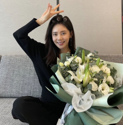 14일 추자현은 브이와 꽃다발 이모티콘으로 밝게 인사했다.On the 14th, Chu Ja-hyun greeted her with a V and a bouquet of flowers.